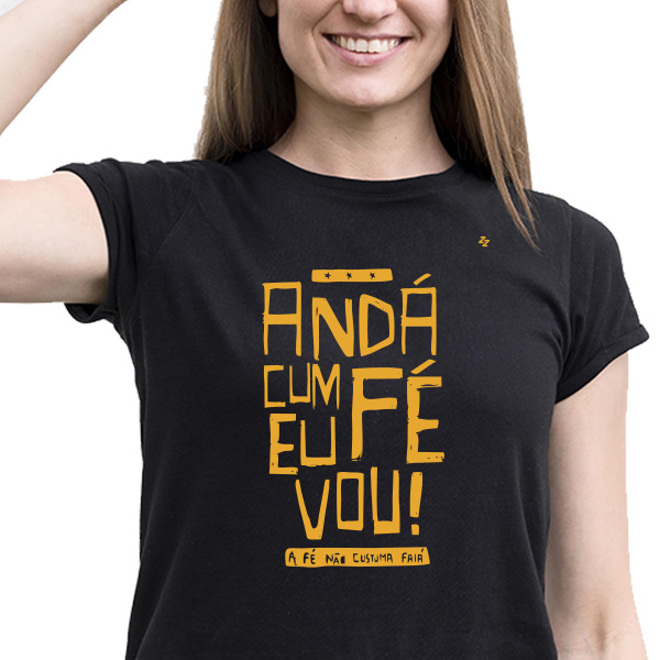 Esta camiseta não é apenas uma peça de roupa; é uma declaração de confiança inspirada nas sábias palavras de Gilberto Gil. A frase "Andá Cum Fé Eu Vou, A Fé Não Costuma Faiá" ganha vida na estampa, proporcionando uma dose extra de motivação com um toque de zoeira.