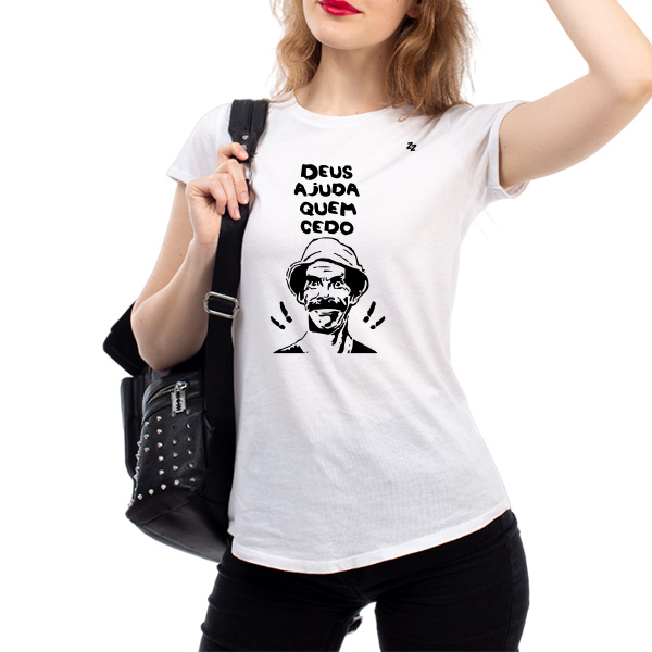 Esta camiseta vai além de ser uma simples peça de roupa; é uma homenagem ao carismático Seu Madruga e à sabedoria popular sobre acordar cedo. A frase "Deus Ajuda Quem Cedo Madruga" ganha vida com a expressão marcante do personagem, adicionando uma pitada de zoeira à sua rotina matinal.